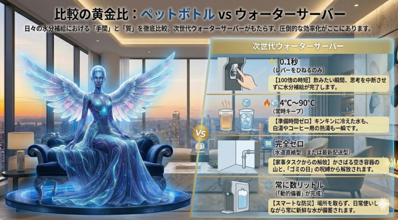 3. 比較の黄金比:ペットボトル vs ウォーターサーバー